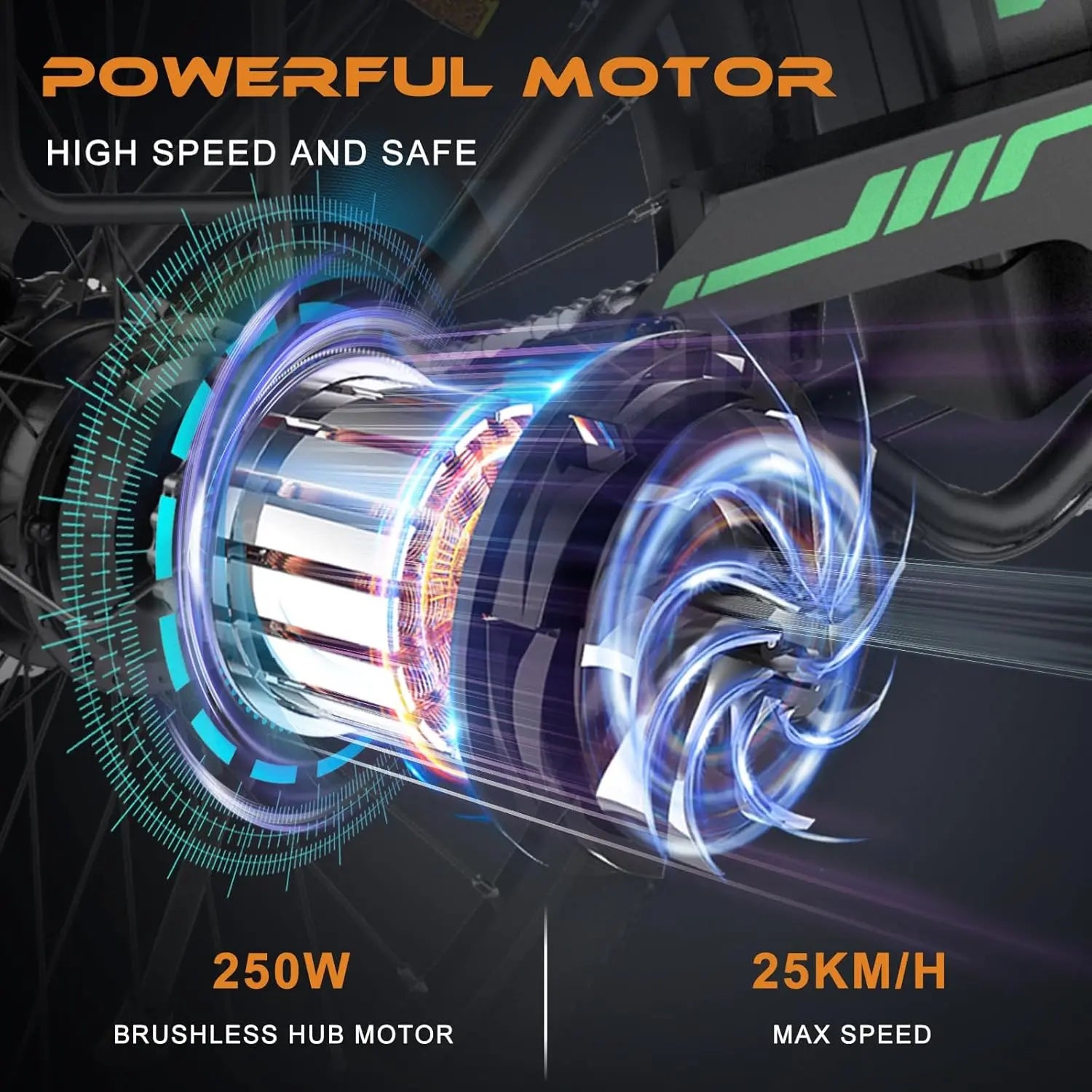 Driving mode: You can choose between two driving modes, normal mode and booster mode. The bike is equipped with a Engine of 36V 250W, which provides enough power for your trips. The maximum speed is 25 KM/H, and the fully charged battery can travel 35-70KM