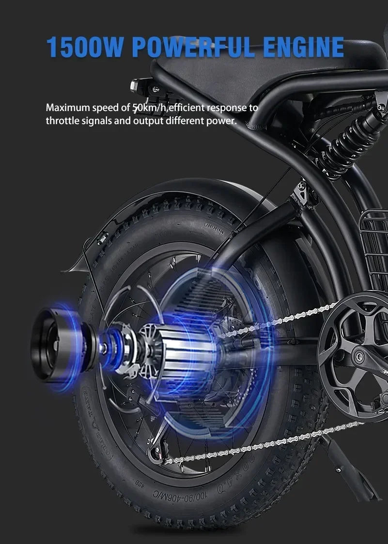 Ebike K7 1500W 48V 20/23AH Max 75 Miles Electric Motorcycle 20 inch Fat Tire Dirt Bike Electric Bike for Adults 7Speed E-Bike